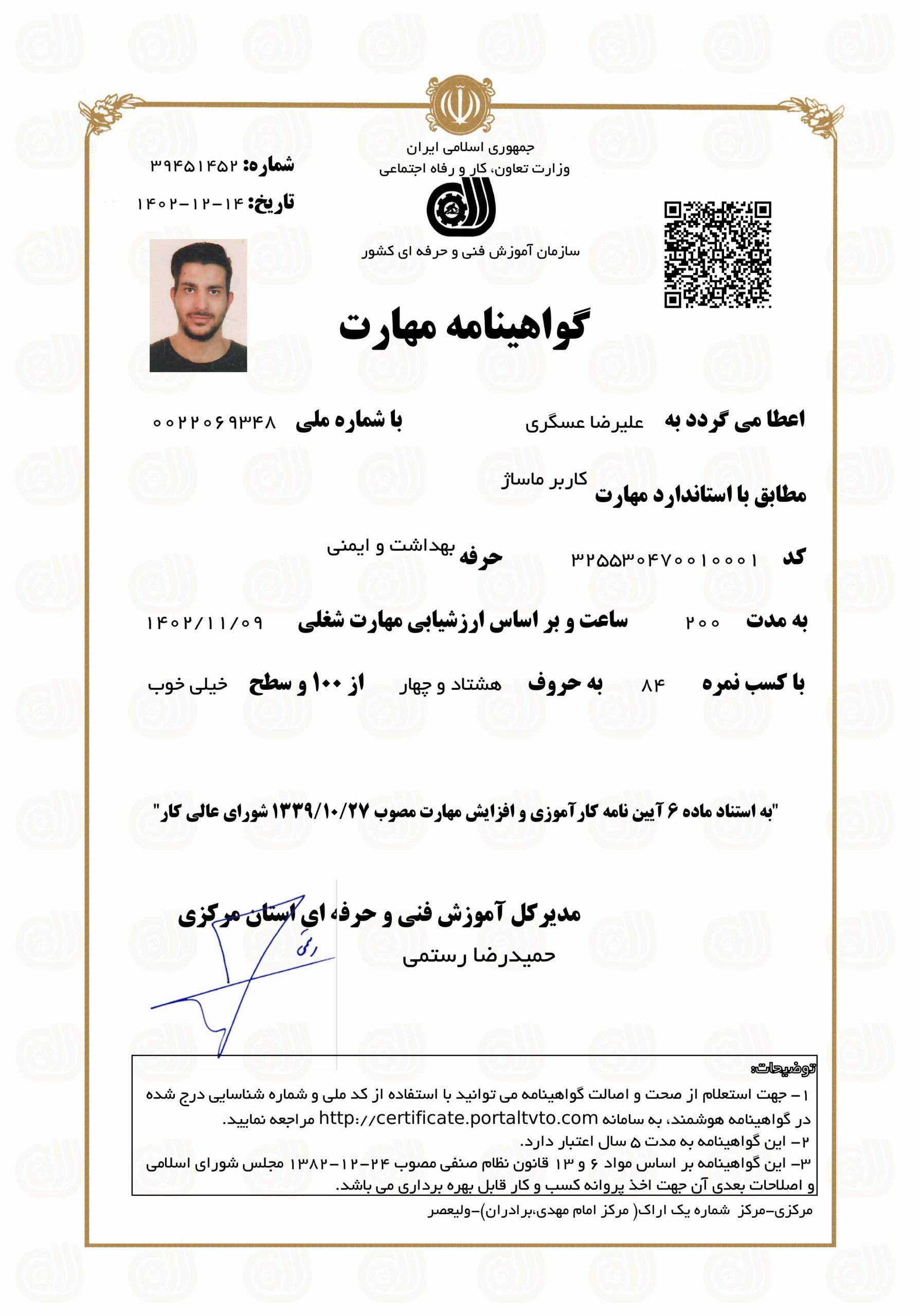 دورههای عمومی ماساژ (مدرک فنی حرفه ای کاربر ماساژ)